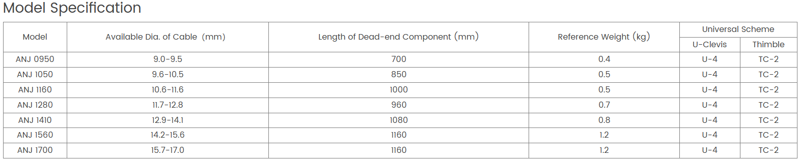 Dead-end for Short Span ADSS with a small Tension Clamp material for aluminum-clad gang wire, mainly used for the corner towers, the middle of follow-tower and connecting the terminal tower, the largest installation file from the less than 100 meters.