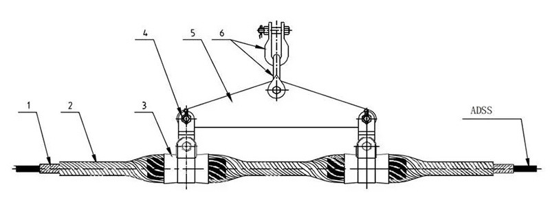 Double Suspension Set for ADSS is mainly used for large height difference, span more than 800 meters or unilateral overhang angle is 30 º -36 º line tower connection.