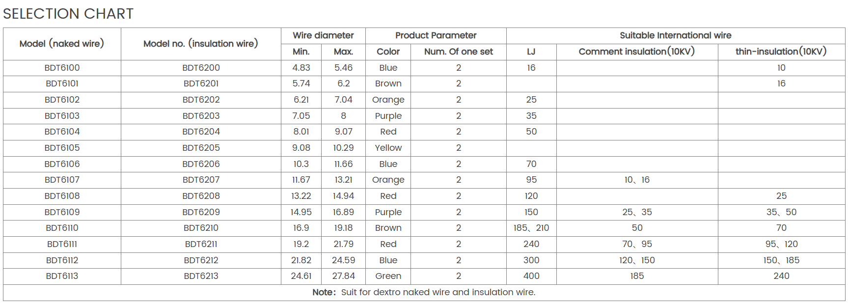 This product is manufactured with the same grade material as the conductor to which it is applied.